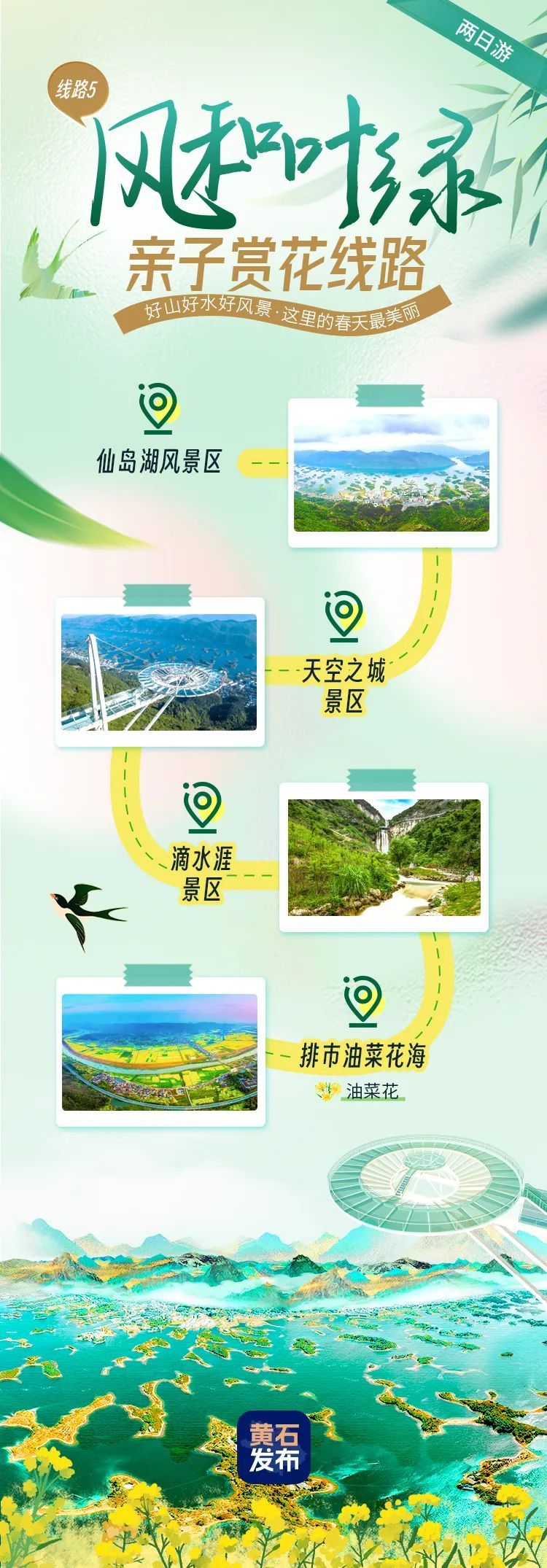 仙島湖風(fēng)景區(qū)-天空之城景區(qū)-滴水涯景區(qū)-排市油菜花海。
