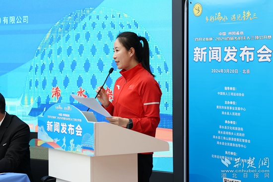現(xiàn)場,2000年悉尼奧運(yùn)會(huì)競走奧運(yùn)冠軍王麗萍向鐵人三項(xiàng)運(yùn)動(dòng)愛好者們發(fā)出邀請(qǐng),今年四月相約湖北浠水。