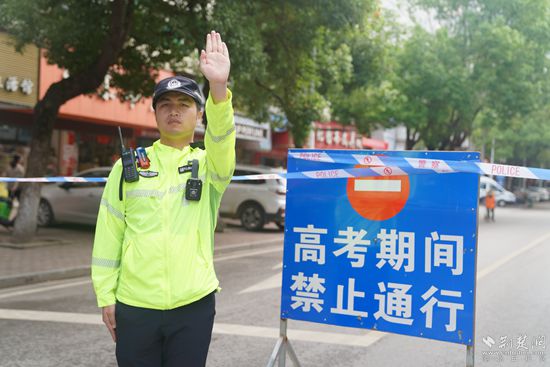 在開考前和考試結束后的高峰期,交警大隊在各考點大門及周邊路段增加執(zhí)勤警力,指揮疏導交通,踐行愛心護考,一路護航考生“乘風破浪”順利參加考試。