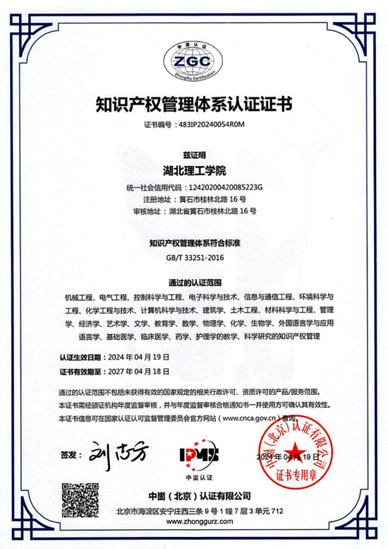 今年3月26日至29日,中崮(北京)認證有限公司派出專家組進駐該校,通過個別訪談、實地走訪、資料查閱等方式展開現場審核和對標驗收。經審核考察,專家組對湖北理工學院知識產權管理工作給予了高度肯定,并一致同意該校通過知識產權管理體系認證。