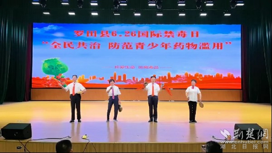 在第37個(gè)國(guó)際禁毒日來(lái)臨之際,羅田縣禁毒委聯(lián)合各部門在羅田實(shí)驗(yàn)高級(jí)中學(xué)開展了“全民共治 防范青少年藥物濫用”為主題的禁毒日文藝演出活動(dòng)。