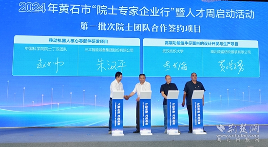 現(xiàn)場(chǎng)還舉行了項(xiàng)目簽約活動(dòng),簽約移動(dòng)機(jī)器人核心零部件研發(fā)項(xiàng)目、高端功能性牛仔面料的設(shè)計(jì)開發(fā)與生產(chǎn)項(xiàng)目等2個(gè)院士專家合作項(xiàng)目、球墨鑄鐵管壁測(cè)量項(xiàng)目等10個(gè)人才合作項(xiàng)目以及4個(gè)人才服務(wù)合作項(xiàng)目,并為鄂東技師學(xué)院國(guó)家級(jí)高技能人才培訓(xùn)基地授牌。