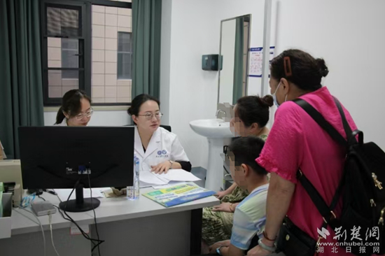 在診室坐診的便是武漢協(xié)和醫(yī)院金銀湖院區(qū)兒科負責人蔡馥丞副教授和黃石市第二醫(yī)院兒科副主任張芷銘。在診室門前,前來就診人員排起長隊,許多家長眉頭緊皺,臉上寫著同一個疑問:我的孩子怎么了?