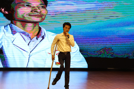 杜詠梅的《牽手》,講述了一位教師與一名自閉癥兒童的故事。“吾國(guó)萬疆以仁愛,千年不滅的信仰......”現(xiàn)場(chǎng)觀眾應(yīng)節(jié)合拍,氣氛達(dá)到了高潮。