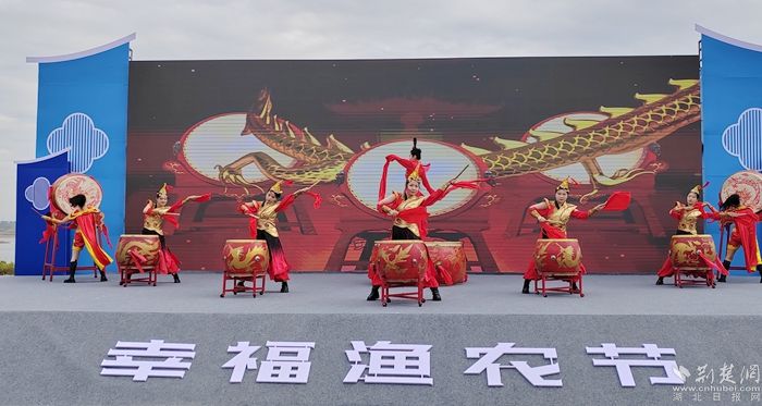 在漁農(nóng)文藝觀賞區(qū),開幕儀式上頒發(fā)了陶店鄉(xiāng)農(nóng)業(yè)發(fā)展顧問和電商發(fā)展顧問的聘書,并舉行了湖北淼燁生態(tài)農(nóng)業(yè)有限公司巴河魚丸項(xiàng)目的簽約儀式。舞臺(tái)上,身著統(tǒng)一服裝的表演者們揮舞著鼓槌,敲打著鑼鼓,喜慶的氛圍讓現(xiàn)場(chǎng)觀眾心潮澎湃,掌聲雷動(dòng)。