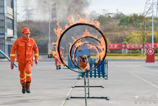 樓層綜合滅火演練前,現(xiàn)場(chǎng)先后開(kāi)展了搜救犬綜合搜救操、繩索救援上升與下降操、綜合滅火救人操等科目。尤其是搜救犬互動(dòng)表演,讓人驚嘆不已。“有幸參加這次活動(dòng),還能‘?dāng)]’到搜救犬,近距離觀看到它們?nèi)绾斡?xùn)練、搜救,我很激動(dòng)。”湖北師范大學(xué)文理學(xué)院消防志愿者王晨睿說(shuō)。