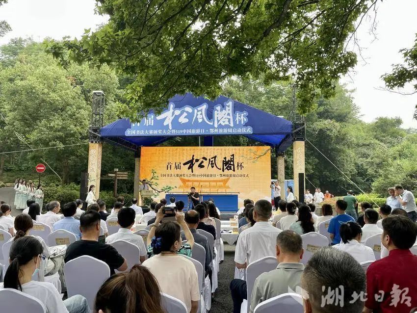 2024年5月19日,中國旅游日當天,首屆“松風閣”杯全國書法大賽頒獎大會在鄂州市西山風景區(qū)隆重舉辦,省、市領(lǐng)導(dǎo)為獲獎代表頒獎。與此同時,現(xiàn)場邀請專家進行了“跨越千年,對話黃庭堅——黃庭堅松風閣書法的價值及對鄂州文化的塑造”對話。
