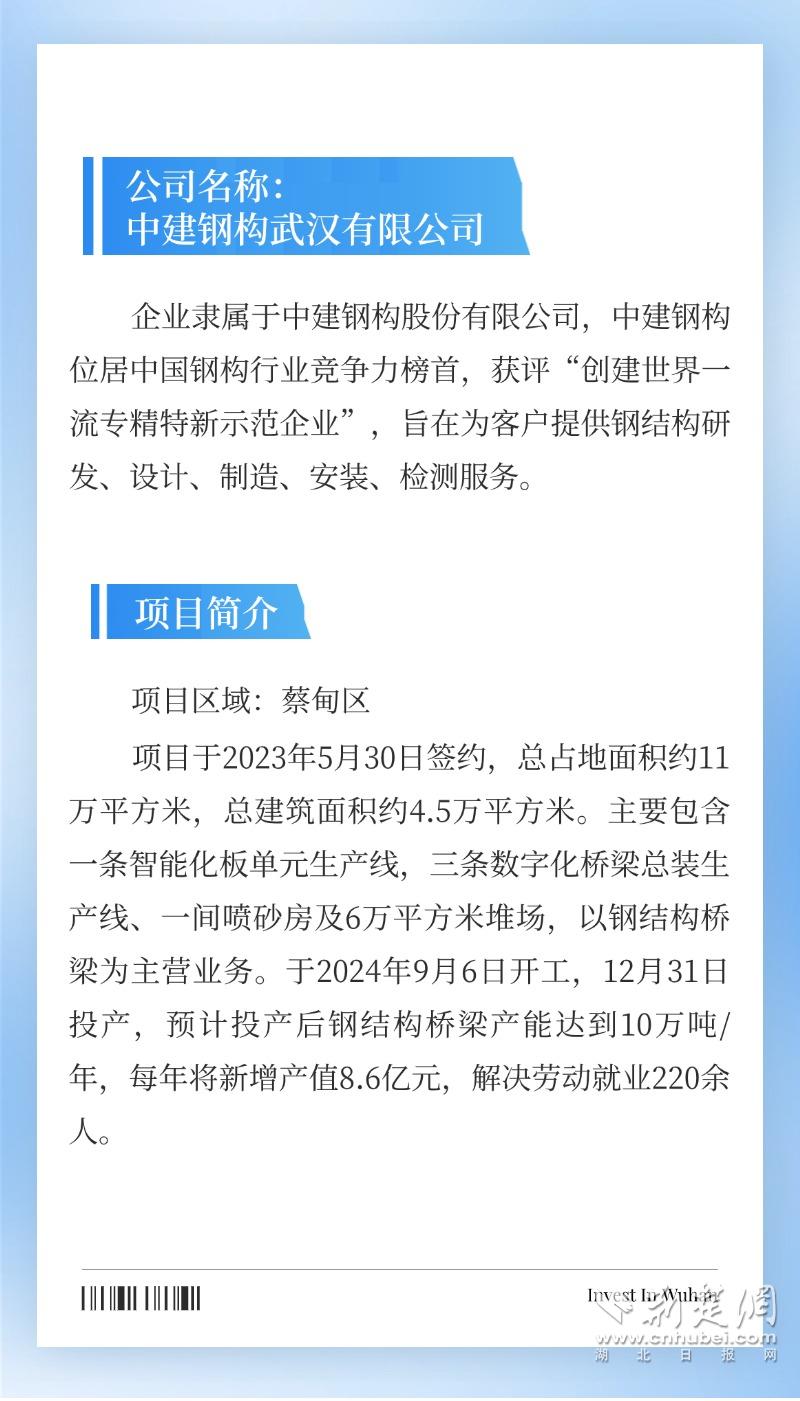 荊楚網(wǎng)(湖北日報網(wǎng))訊(通訊員 謝家奇 陳丹)2024年,武漢招商引資活力迸發(fā),一大批重點項目落地有聲。推動傳統(tǒng)產(chǎn)業(yè)轉(zhuǎn)型升級,培育壯大新興產(chǎn)業(yè)、未來產(chǎn)業(yè)齊頭并進,不斷擦亮“投資武漢”品牌,以高水平招商引資賦能武漢高質(zhì)量發(fā)展。