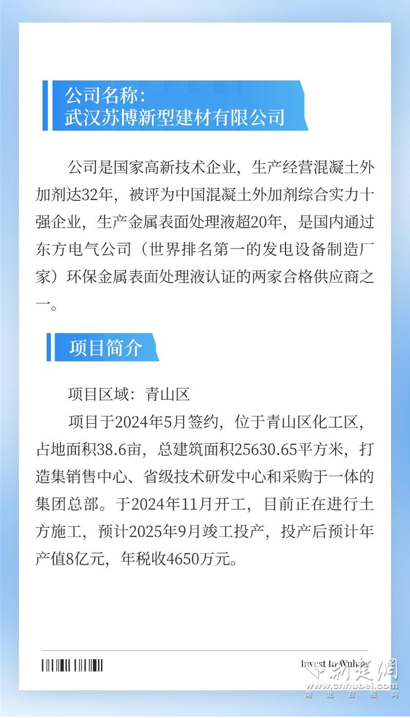 武漢蘇博新材高性能混凝土外加劑及環(huán)保金屬表面處理液生產(chǎn)建設項目