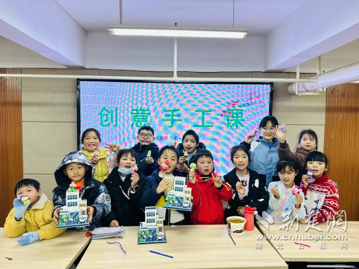 “爸爸媽媽白天要上班,在這里我可以和老師同學們一起玩,寒假一點都不無聊了?!痹谑止ふn上,在志愿者的引導下,何紫琳與同學們一起制作小蛇,親手完成的作品將作為社區(qū)公共空間的裝飾,慶祝新年的到來。