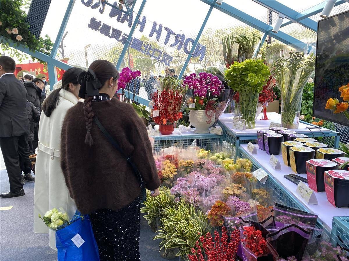 在鮮花展區(qū),厄瓜多爾玫瑰、坦桑尼亞鐵線蓮、南非紅帝王花、荷蘭丁香花和彼岸花、墨西哥跳舞蘭等花卉漂洋過海而來,與來自中國云南、海南等地的香水百合、雛菊、轉運竹等各色花卉植物爭奇斗艷。