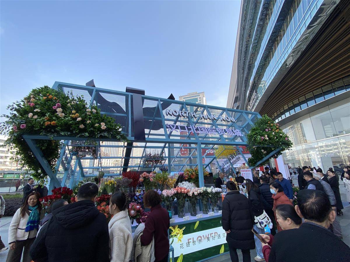 圖為武商夢時代“國潮好物市集”漢口北國際貿(mào)易城鮮花展區(qū)。(記者劉天縱攝)
