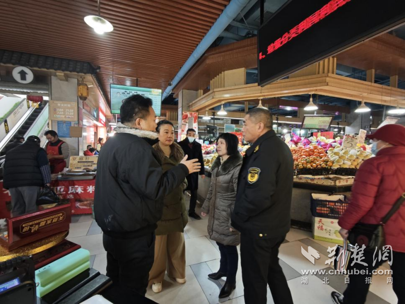 嚴(yán)密開展農(nóng)貿(mào)市場“優(yōu)秩序保安全迎新年”專項(xiàng)督查行動,分管領(lǐng)導(dǎo)帶隊(duì)檢查了東湖景園市場,重點(diǎn)檢查了市場內(nèi)外環(huán)境衛(wèi)生、長江漢江魚禁售、計(jì)量電子秤、保供穩(wěn)價(jià)、消防安全等情況。