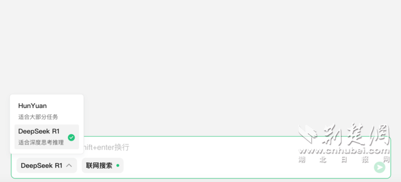 荊楚網(wǎng)(湖北日報網(wǎng))訊(通訊員 袁軒)2月13日,騰訊AI助手“騰訊元寶”迎來重大更新,同時支持混元和DeepSeek兩大模型,打開騰訊元寶并進入對話界面,即可免費使用DeepSeek-R1滿血版模型。