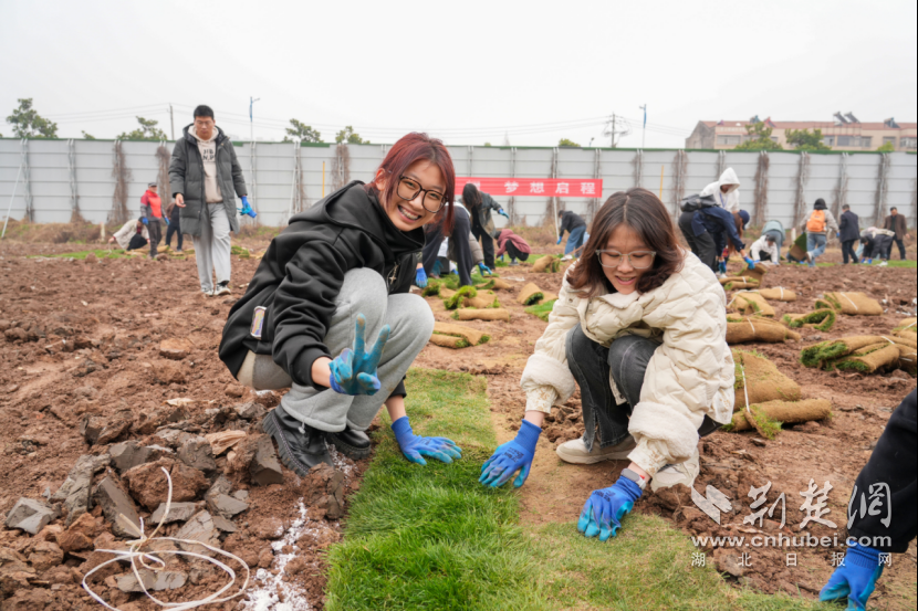 荊楚網(wǎng)(湖北日報(bào)網(wǎng))訊 (通訊員 朱喬丹 攝影 談宇鋒 梁鵬 王磊 陳沖)春風(fēng)拂綠,萬物競發(fā)。3月12日是第47個植樹節(jié),武漢生物工程學(xué)院響應(yīng)“履行植樹義務(wù),共建美麗中國”號召,在大健康學(xué)產(chǎn)研基地的茶園和三友園、四季園等多地開展植樹綠化活動。校領(lǐng)導(dǎo)、校“兩委”成員帶頭參與,200余名師生志愿者共同揮鍬培土澆水,種下茶樹、櫻花、梅花、蠟梅等多種苗木七千余株,將生態(tài)理念融入勞動實(shí)踐,為魅力校園注入新活力。