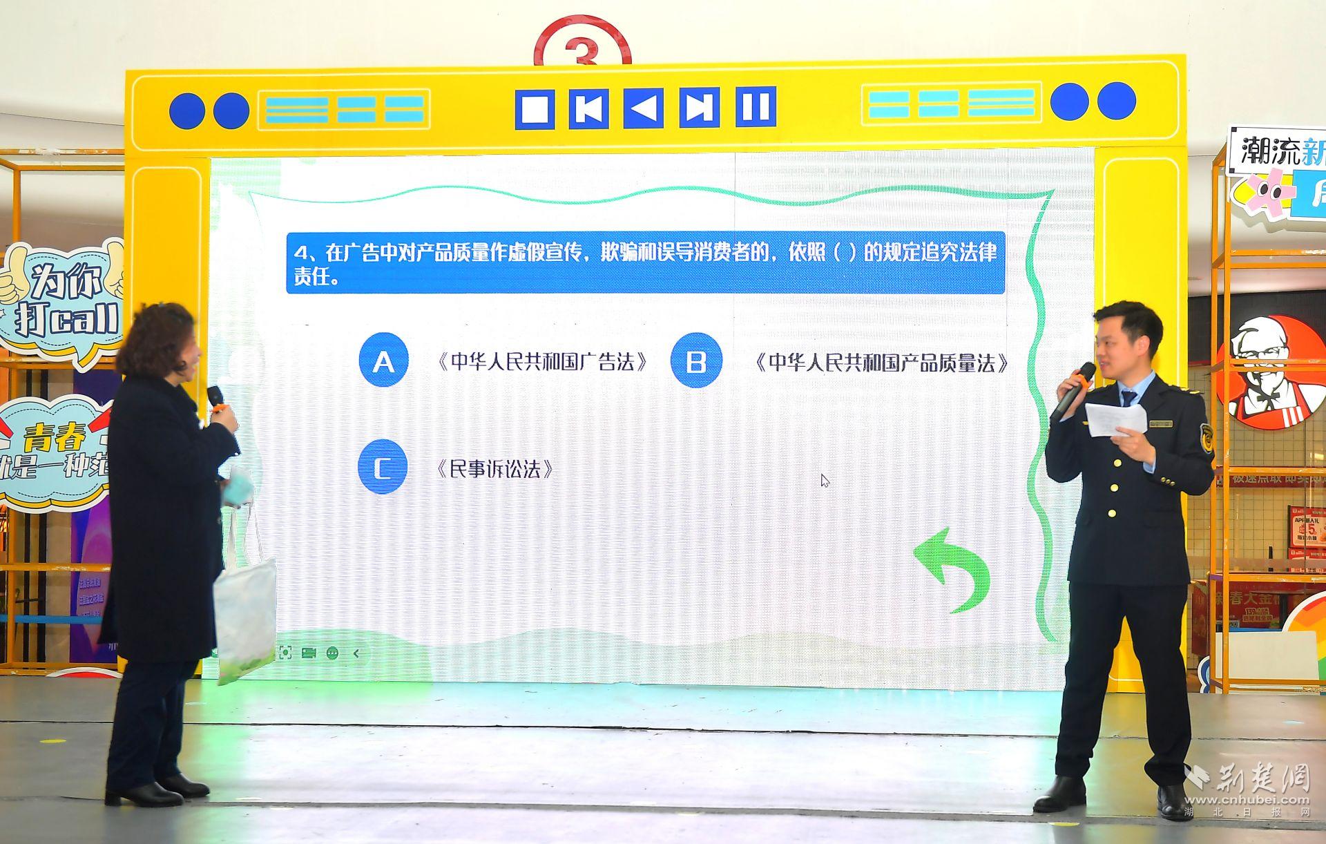 荊楚網(wǎng)(湖北日?qǐng)?bào)網(wǎng))訊(記者 何婧 通訊員 蔡明珠)“消保知識(shí)一問(wèn)一答,在寓教于樂(lè)中傳播了知識(shí),也能讓市民將消保知識(shí)融入日常生活?!?月13日,金銀湖萬(wàn)達(dá)廣場(chǎng)內(nèi),東西湖區(qū)市場(chǎng)監(jiān)管局主辦的以“共筑滿(mǎn)意消費(fèi)”為主題的紀(jì)念“3·15”國(guó)際消費(fèi)者權(quán)益日系列活動(dòng)現(xiàn)場(chǎng),消保知識(shí)趣味問(wèn)答環(huán)節(jié)為市民打造了一場(chǎng)沉浸式、趣味化的“消保課堂”。