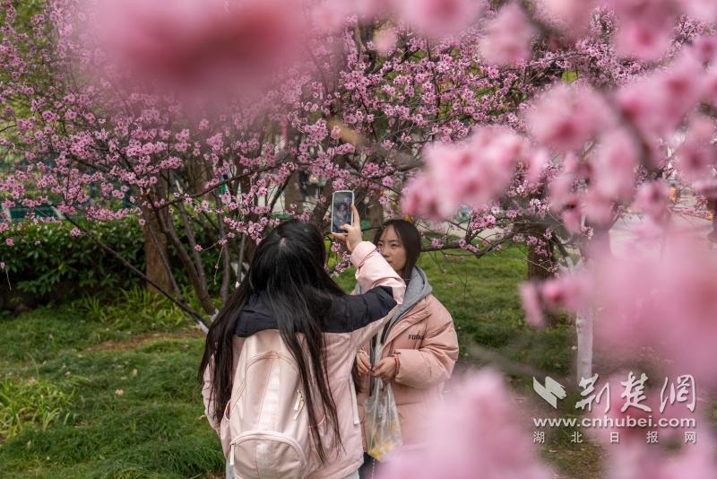 荊楚網(wǎng)(湖北日?qǐng)?bào)網(wǎng))訊(通訊員 熊琪 余芳利)三月?tīng)€漫,櫻花盛開(kāi);大美江湖,迎八方來(lái)客。一座城的浪漫,都藏在櫻花里。粉白的“初美人”綴滿枝頭,微風(fēng)拂過(guò),花瓣如雪片紛揚(yáng)飄落。深紅的“寒緋櫻”似火焰般灼灼盛放,與古色古香的唐風(fēng)飛檐相映,穿越千年。