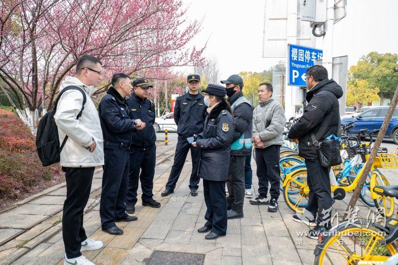 為了營(yíng)造良好的賞櫻環(huán)境,更好服務(wù)市民游客,東湖風(fēng)景區(qū)聚焦櫻園游客體驗(yàn)和交通痛點(diǎn)問(wèn)題,多次開(kāi)展現(xiàn)場(chǎng)“馬路辦公”,圍繞訪梅路、植物園路、梅園東停車場(chǎng)周邊環(huán)境、交通秩序、共享單車等問(wèn)題“問(wèn)診開(kāi)藥”,聯(lián)動(dòng)開(kāi)展集中整治。