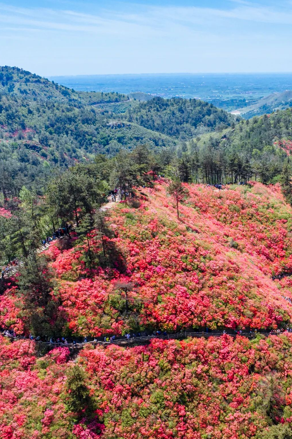 武漢市文化和旅游局,贊1165“人間仙境云霧山,層巒疊嶂映紅天”,木蘭云霧山的杜鵑花以映山紅為主,從3月中旬開(kāi)始,萬(wàn)畝野生紅杜鵑競(jìng)相綻放,春風(fēng)吹過(guò),此起彼伏,如霞似火,嫣然一片杜鵑花的海洋。
