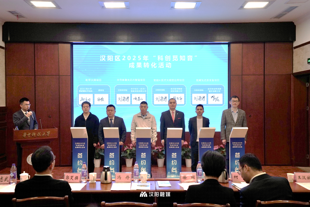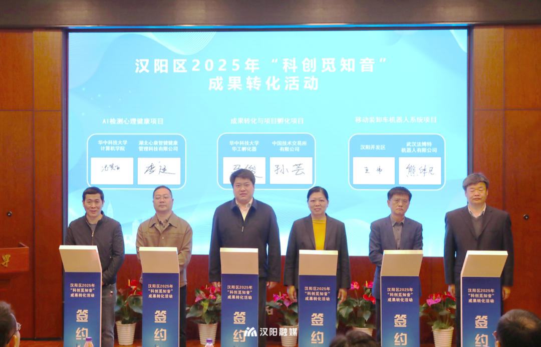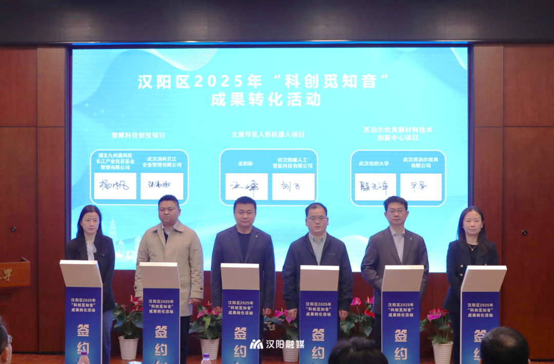 4月2日,漢陽區(qū)2025年“科創(chuàng)覓知音”成果轉(zhuǎn)化活動首次走進(jìn)華中科技大學(xué),現(xiàn)場13個科創(chuàng)項目集中簽約,涵蓋人工智能、智能制造、綠色低碳等多個新興產(chǎn)業(yè)領(lǐng)域,其中約七成是從在漢高校飛出的科技成果轉(zhuǎn)化和創(chuàng)業(yè)項目,來自華中科技大學(xué)和武漢理工大學(xué)的3個機器人項目備受關(guān)注。