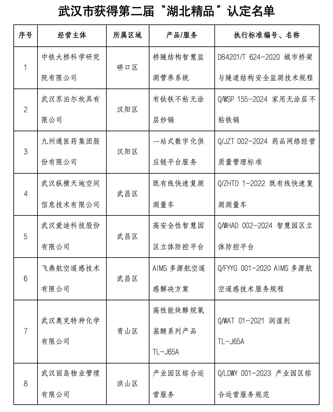 荊楚網(wǎng)(湖北日報網(wǎng))訊(記者 何婧 通訊員 譚賢豪)近日,從武漢市市場監(jiān)管局獲悉,武漢市36項產(chǎn)品(服務(wù))榮獲第二屆“湖北精品”。