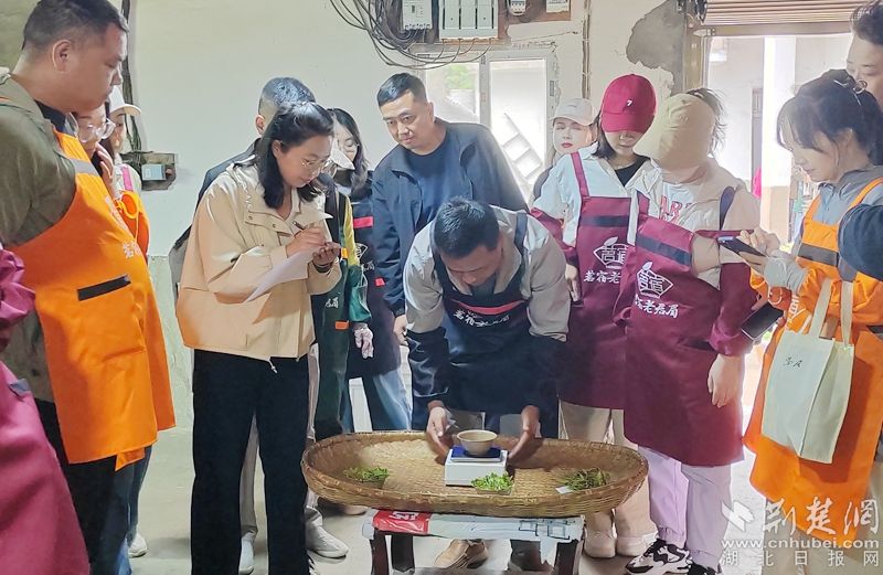 文化節(jié)期間,采茶制茶大賽讓活動(dòng)嘉賓沉浸式體驗(yàn),大呼過(guò)癮。在"荒野尋茶"采茶大賽中,3支代表隊(duì)著裝統(tǒng)一,在層層茶壟間展開激烈角逐。評(píng)委們嚴(yán)格執(zhí)行生產(chǎn)標(biāo)準(zhǔn),對(duì)鮮葉驗(yàn)質(zhì)稱重,嚴(yán)格評(píng)判,最終武漢嘆茶居茶藝館代表隊(duì)獲得優(yōu)勝。