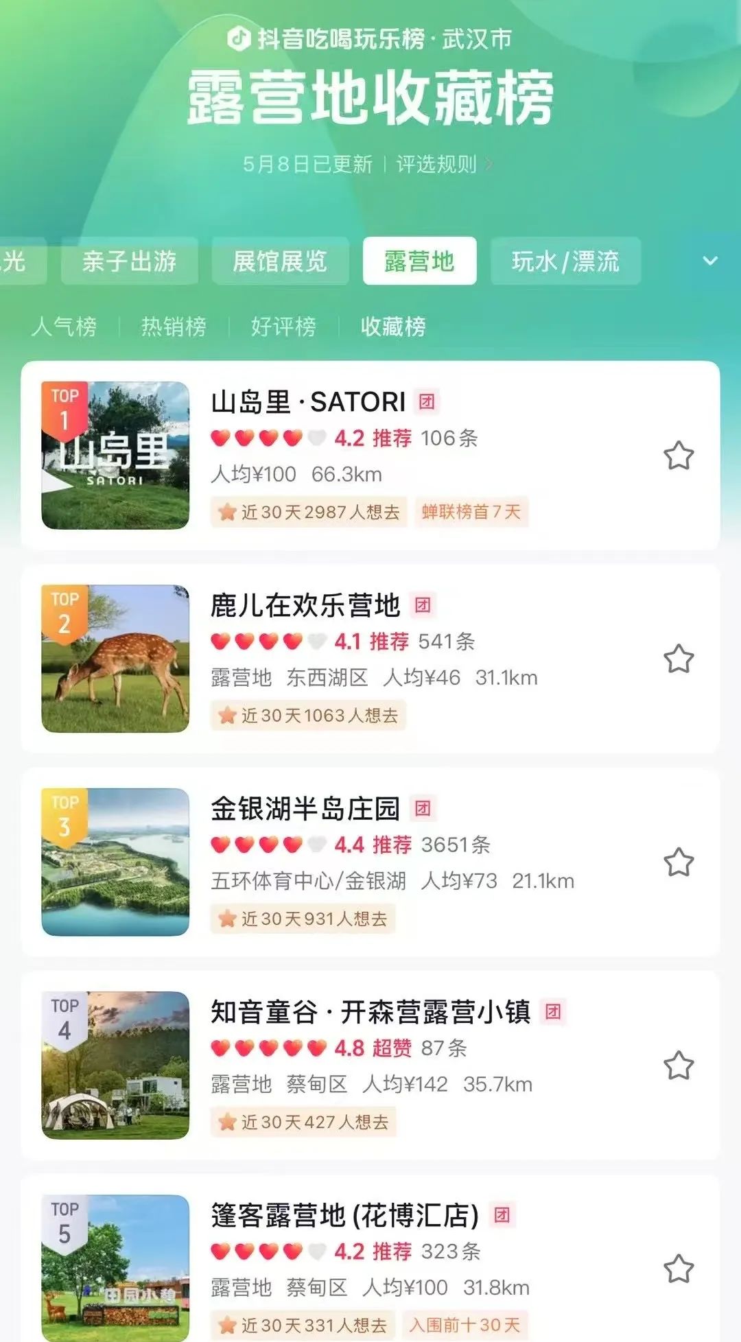 黃陂山島里營地雙榜TOP1 實至名歸
