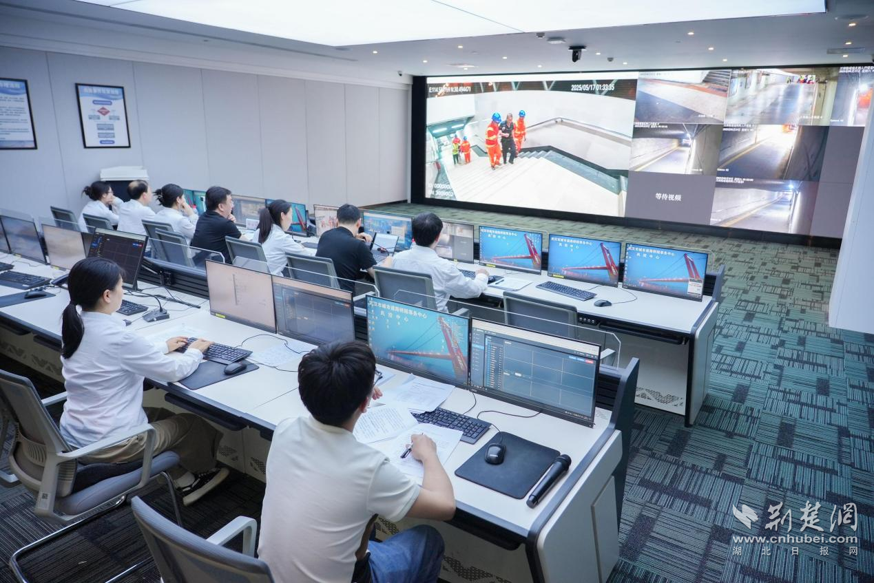 演練模擬了進(jìn)入5月以來(lái),武漢連續(xù)遭遇強(qiáng)降雨,江河湖泊水位上漲,部分城市橋梁橋面、隧道及通道出現(xiàn)積水、倒灌和群眾被困等緊急情況,指揮中樞設(shè)在武漢市城市道路橋隧事務(wù)中心風(fēng)控中心。