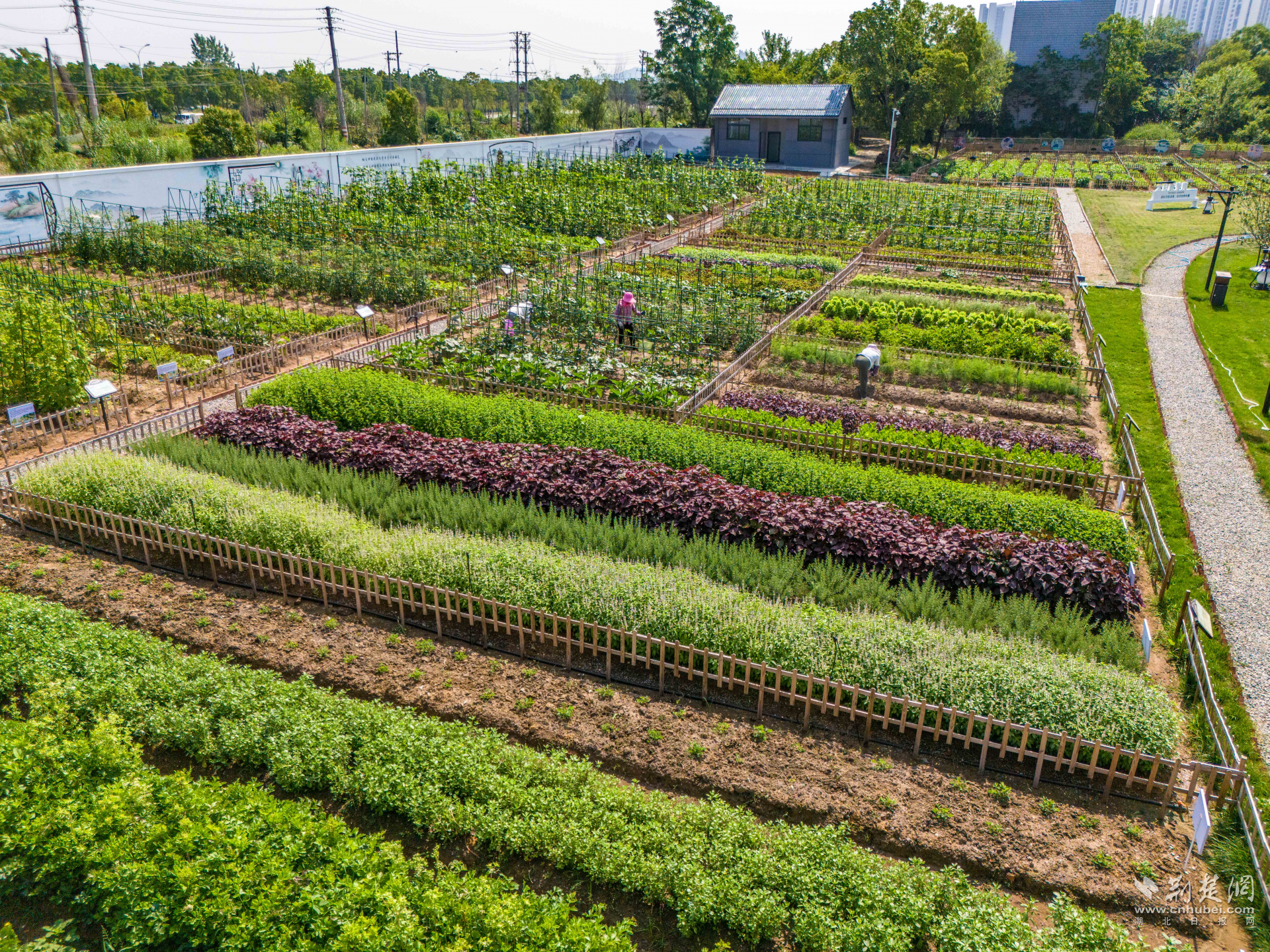 該區(qū)被譽(yù)為武漢市民的“菜籃子”“果盤子”,結(jié)合地域特點(diǎn),該區(qū)創(chuàng)新思路,結(jié)合當(dāng)?shù)赝寥馈夂驐l件,將清理后的土地規(guī)劃為共享菜地。劃分規(guī)整的菜畦、縱橫交錯(cuò)的灌溉溝渠、統(tǒng)一搭建的標(biāo)識(shí)牌,讓這片曾經(jīng)的“臟亂差”區(qū)域煥發(fā)新生。