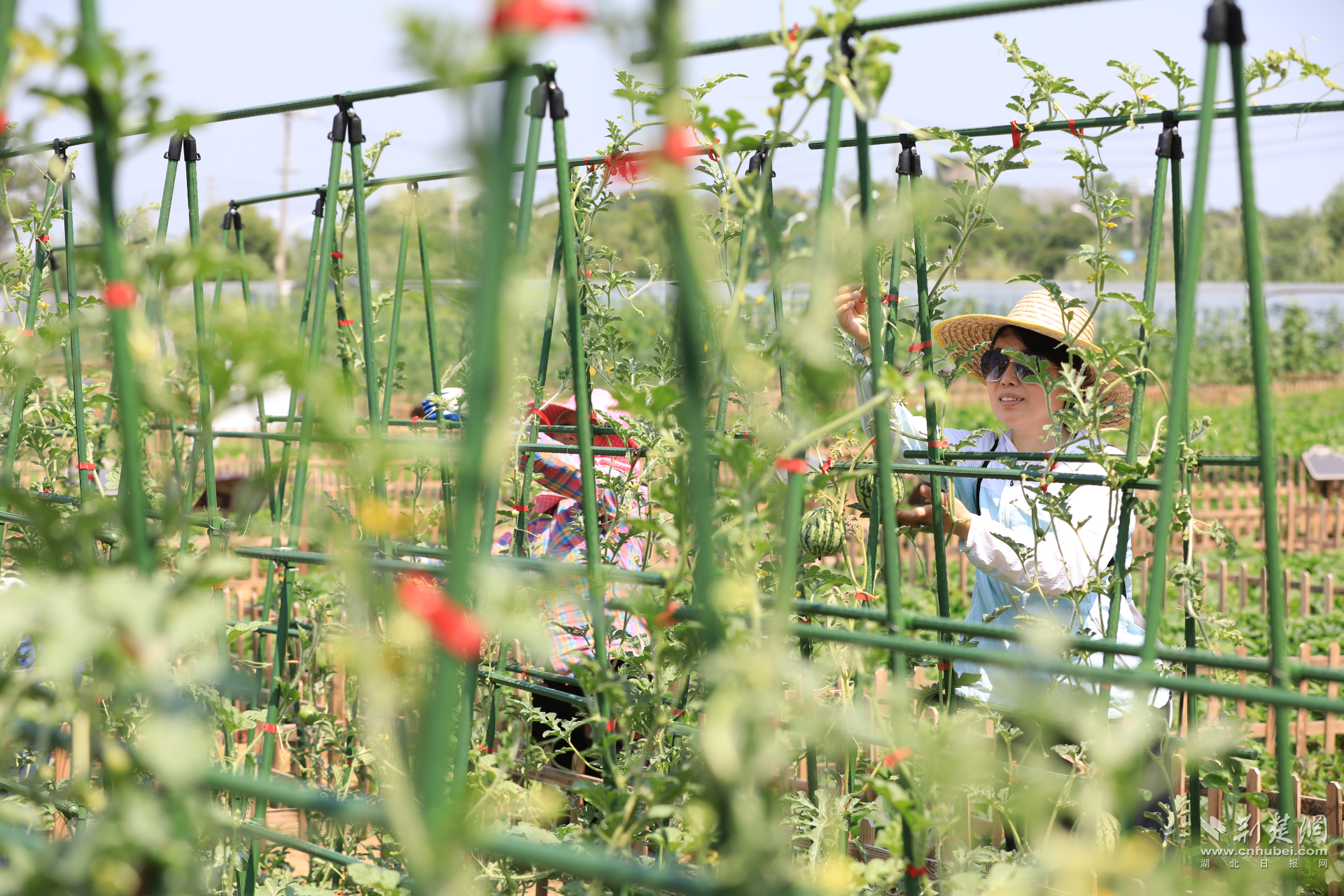 現(xiàn)場(chǎng)市民采摘瓜果。
