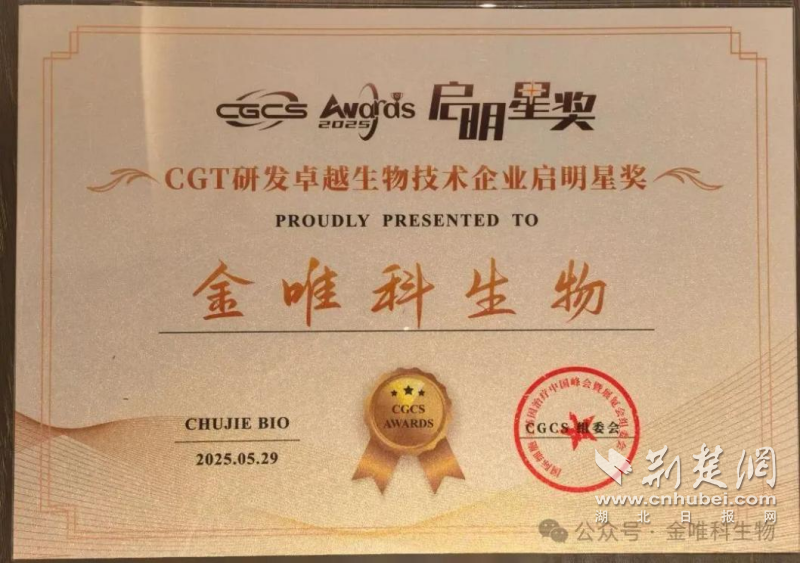 荊楚網(wǎng)(湖北日報(bào)網(wǎng))訊(通訊員 董高宣)近日,第六屆國際細(xì)胞與基因治療中國峰會(CGCS 2025)在南京揚(yáng)子江國際會議中心召開,同期舉行了CGCS Awards“啟明星獎(jiǎng)”頒獎(jiǎng)盛典。東湖高新集團(tuán)投資企業(yè)武漢禾元生物科技股份有限公司(以下簡稱“禾元生物”)因優(yōu)質(zhì)的產(chǎn)品與服務(wù)榮獲“CGT領(lǐng)域可靠原料與試劑供應(yīng)啟明星獎(jiǎng)”,另一投資企業(yè)成都金唯科生物科技有限公司(以下簡稱“金唯科”)憑借其在基因治療領(lǐng)域的創(chuàng)新成果榮獲“CGT研發(fā)卓越生物技術(shù)企業(yè)啟明星獎(jiǎng)”。