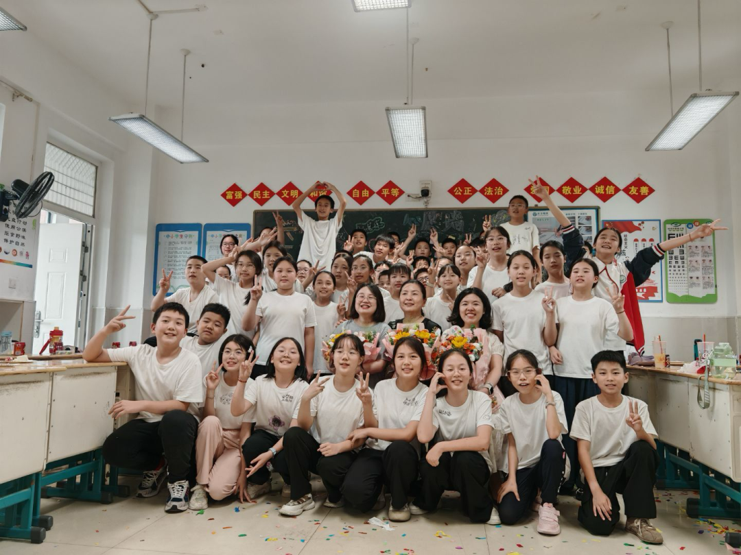 本來以為,我會(huì)站在原地看學(xué)生奔赴山海。沒想到,我也收到了超大的驚喜。離校前,家長為班級(jí)組織了一場(chǎng)溫馨的活動(dòng),還播放了一段長達(dá)6分鐘的“回憶殺”視頻,太令我感動(dòng)了!
