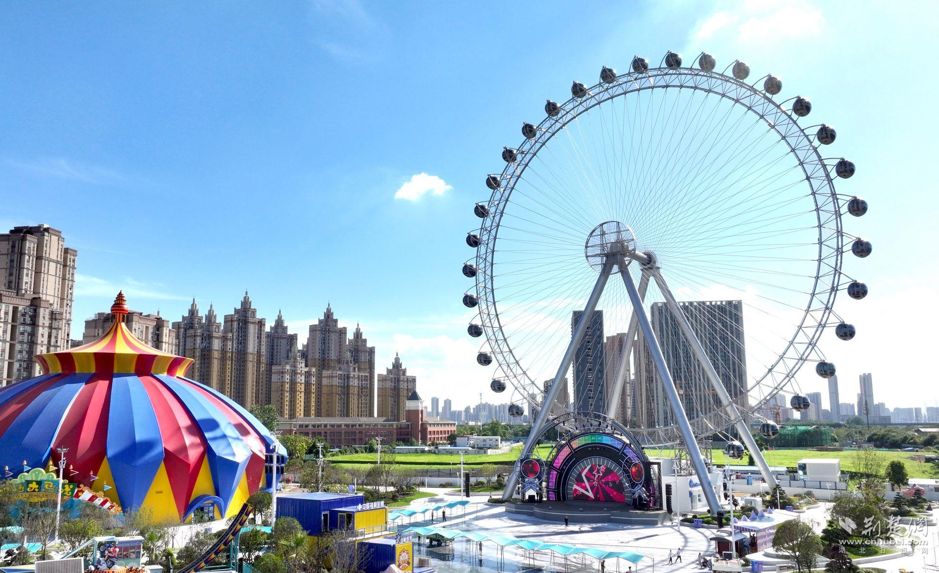 “楚天之眼”摩天輪高達91米,相當于30層樓的高度,旋轉(zhuǎn)一周需17分18秒,36間“太空艙”可全景環(huán)視,是目前武漢摩天輪中最高、最大的一個。