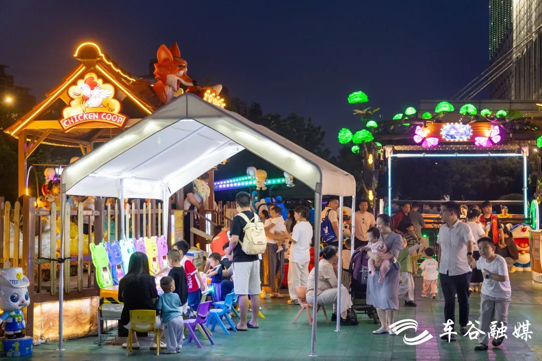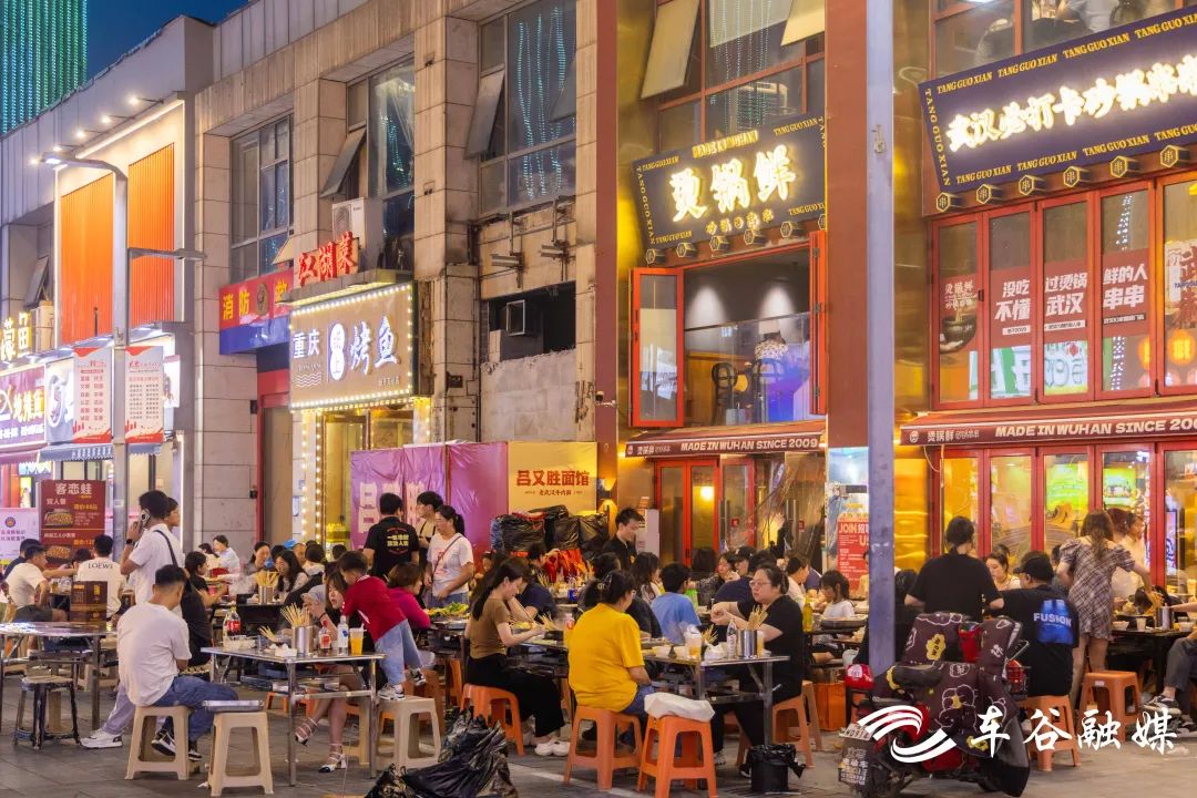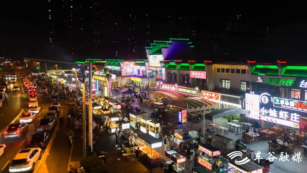網(wǎng)紅集裝箱集市上,人們?nèi)宄扇?,手捧奶茶,聊天、散步,打工人迎?lái)一天中最松弛的時(shí)刻。不遠(yuǎn)處,兒童樂園傳來(lái)陣陣歡笑,快樂氣球屋、小雞快跑是孩子們的最愛。萬(wàn)達(dá)金街上,烤串、麻辣燙飄香,耳邊傳來(lái)“走,去擼串!”“快來(lái),吃油燜大蝦!”