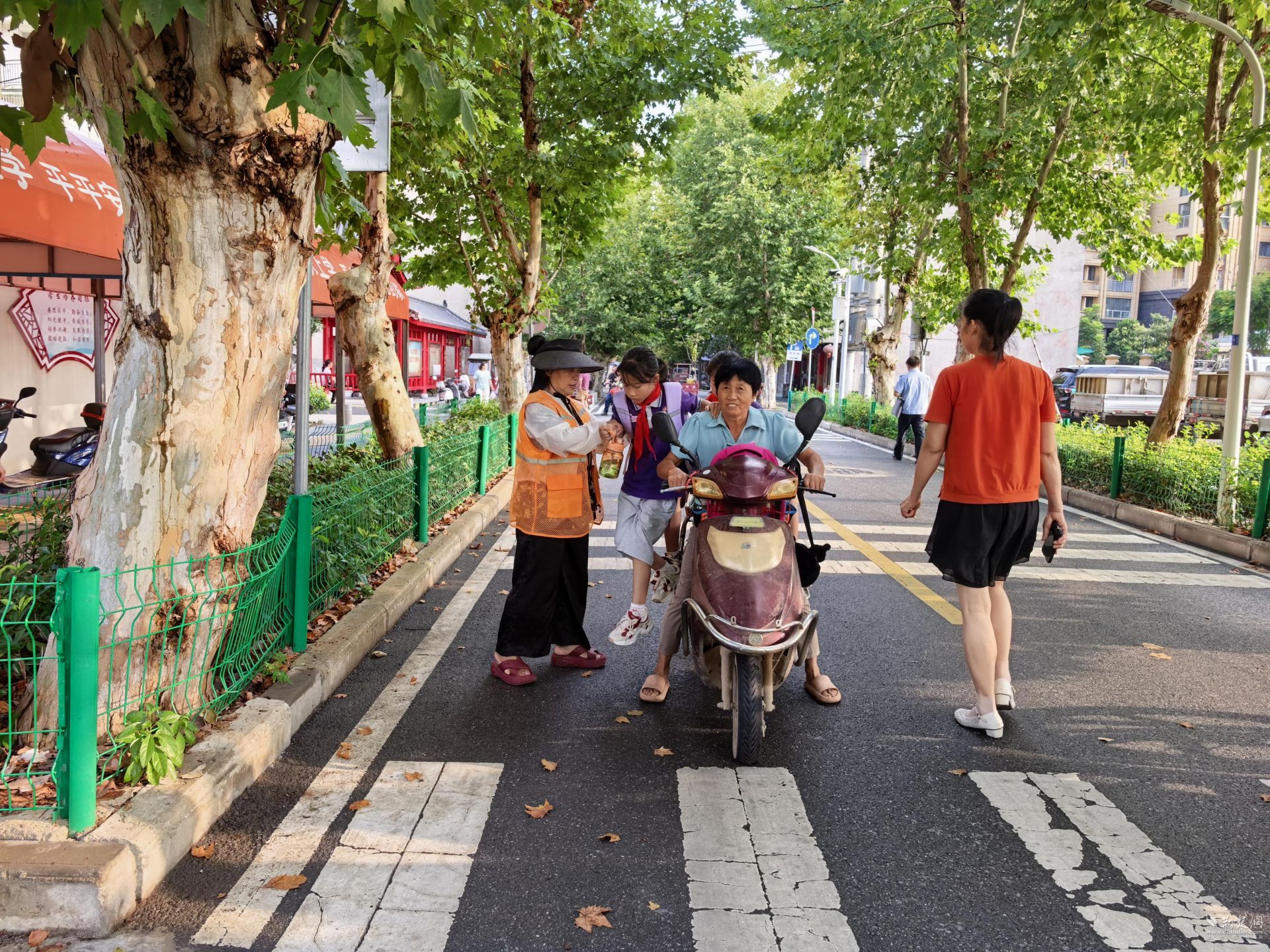 “寶貝別緊張,阿姨送你到教室門口?!?社區(qū)工作人員牽著一名背著卡通書包的一年級新生,耐心安撫著哭鬧的孩子,微笑著向焦慮的家長點頭示意。針對初次入學的低年級學生,社區(qū)特別設立 “愛心護送崗”,由專人一對一陪護穿過人行道,這些細致舉動讓校門口不時響起家長們的道謝聲。