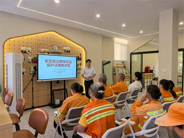 法律小課堂上,律師劉銳用情景劇還原“中暑取消訂單被扣款”的常見糾紛,瞬間抓住眾人注意力。他結(jié)合《防暑降溫措施管理辦法》第14條,把“高溫作業(yè)權(quán)益保障”“維權(quán)流程”等法條拆成大白話,還設(shè)置快問快答環(huán)節(jié),細(xì)致解答工資結(jié)算、工傷認(rèn)定等疑問。工會(huì)小組同步開通應(yīng)急維權(quán)通道,將法律咨詢鏈接至工會(huì)二維碼,方便勞動(dòng)者隨時(shí)求助?!耙郧坝龅郊m紛怕麻煩,現(xiàn)在不僅清楚有哪些權(quán)益,還清楚了維權(quán)途徑,心里更有底了。”外賣員王師傅掃碼關(guān)注后說道。