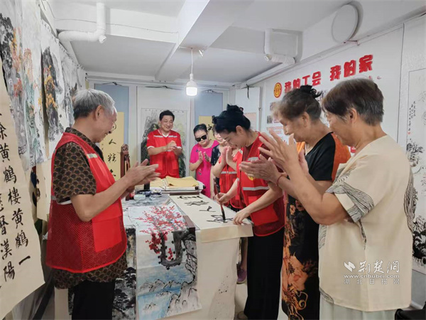 居民們也主動(dòng)加入這場(chǎng)“文化小聚”,有的駐足觀摩創(chuàng)作過程,有的輕聲與工會(huì)組員交流心得?!懊恐芩穆愤^都能看到老師們?cè)谶@兒練字,今天終于近距離欣賞作品,‘室雅人和’這四個(gè)字,說的就是咱們小區(qū)的日常!”居民周阿姨笑著分享感受。退休教師劉先生則表示,這樣的活動(dòng)既讓退休生活更充實(shí),也為小區(qū)添了文化氣,“希望能一直辦下去,讓更多人愛上書畫、感受鄰里溫情。”