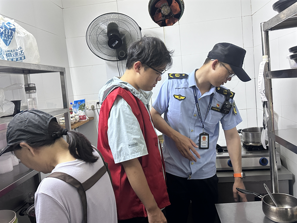 在執(zhí)法隊(duì)員的悉心帶領(lǐng)下,黨建助理員們還參與了燃?xì)獍踩珜m?xiàng)檢查。他們走進(jìn)餐飲商戶,學(xué)習(xí)檢查燃?xì)馐褂冒踩?,排查潛在隱患,并向經(jīng)營者講解安全用氣知識。黨建助理員程昊宇在參與檢查后深有感觸:“燃?xì)獍踩珶o小事,每一處都連著大家的安全。上手干了才明白,城管工作不僅繁雜,要做好這份工作還得很細(xì)心。”