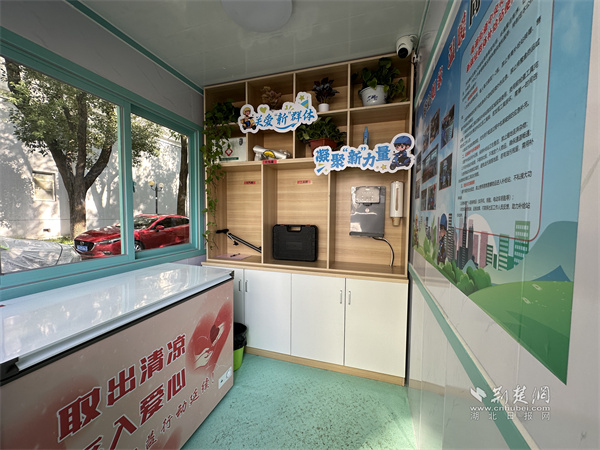 社區(qū)在北大門(mén)入口處設(shè)立的“暖心補(bǔ)給站”,成了小哥們的“能量加油站”。拉開(kāi)補(bǔ)給站的冰柜,冰爽的礦泉水整齊擺放;醫(yī)藥箱里,創(chuàng)可貼、碘伏、藿香正氣水等應(yīng)急藥品一應(yīng)俱全;維修工具箱和電動(dòng)打氣筒已幫十多位小哥解決過(guò)電動(dòng)車(chē)爆胎、零件松動(dòng)的難題;打包袋也方便了小哥臨時(shí)更換破損外賣(mài)包裝?!跋奶焖屯瓴?,來(lái)這兒取瓶冰水,渾身的燥熱都散了,心里也涼快!”快遞小哥王師傅邊說(shuō)邊拿起一瓶水,臉上滿(mǎn)是滿(mǎn)足。