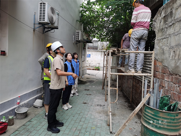 會后,武漢城建第一時間組織專業(yè)人員赴現(xiàn)場勘察,經(jīng)綜合研判制定科學維修方案,明確職責分工與時間節(jié)點。社區(qū)黨委則同步做好協(xié)調(diào)保障,一方面向周邊居民細致解讀維修計劃、解答疑問,還組織玻璃廠橫街工會小組成員定期巡查危墻區(qū)域,張貼警示標識、拉設警戒線,勸導居民遠離危險地帶;另一方面與企業(yè)保持實時溝通,確保施工按節(jié)點推進。