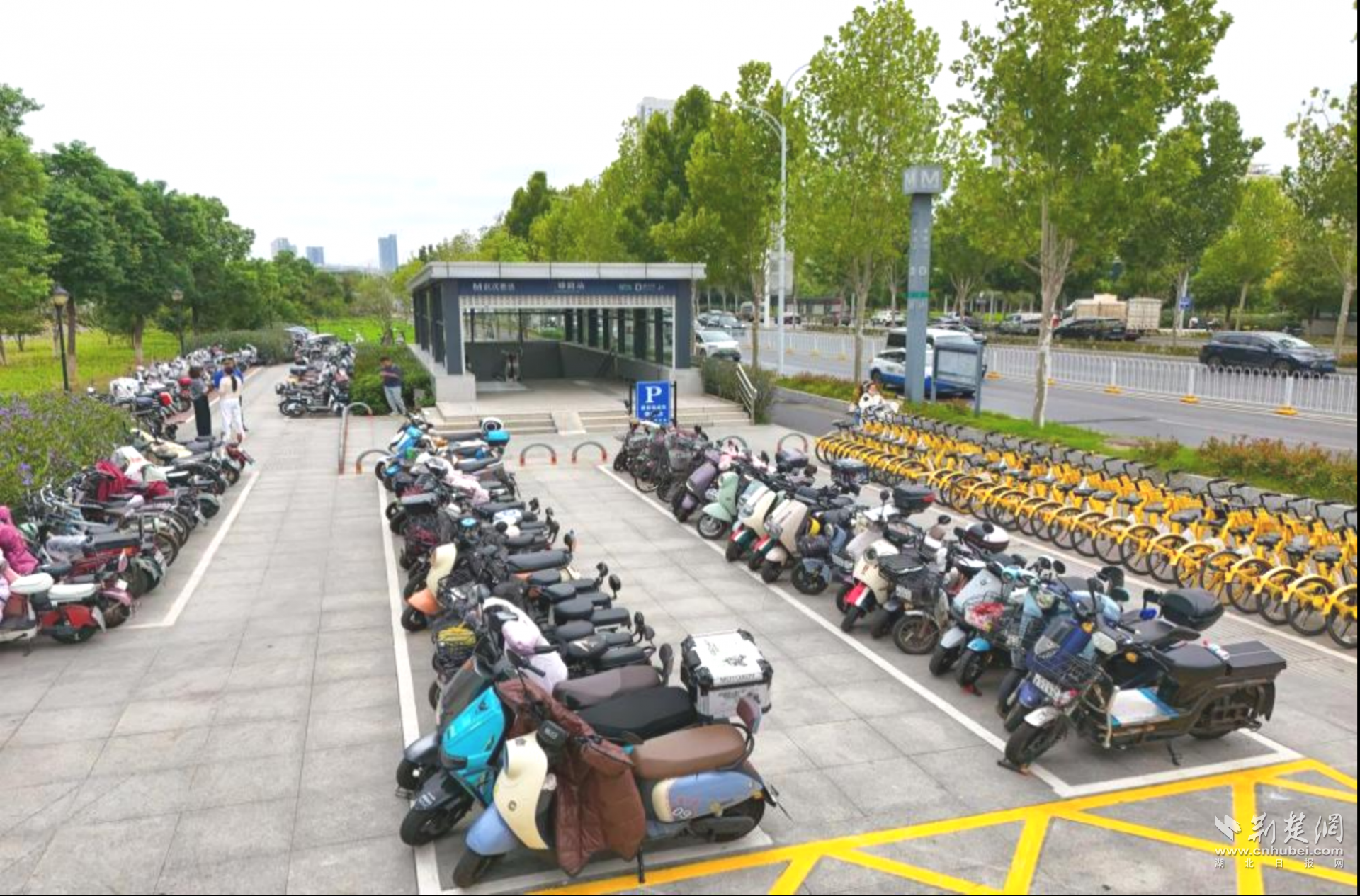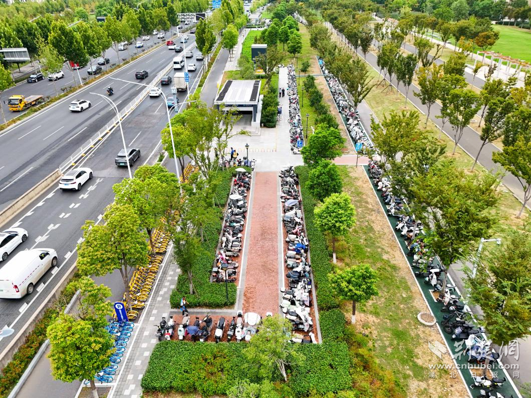 荊楚網(wǎng)(湖北日?qǐng)?bào)網(wǎng))訊(記者 何婧 通訊員 汪玉平 黃慕潔 羅樂(lè))清晨七點(diǎn)半的金山大道,陽(yáng)光正好灑在二雅路地鐵站C出口。王女士騎著小電動(dòng),熟練地把車(chē)停進(jìn)新劃的白色線框里。“現(xiàn)在可算不用兜圈子找車(chē)位了!”她鎖好車(chē),抬眼看了看站口那塊醒目的藍(lán)牌子——“居民電動(dòng)車(chē)??奎c(diǎn)”“共享單車(chē)區(qū)”,幾個(gè)大字清清楚楚。不過(guò)幾分鐘,她已經(jīng)刷卡進(jìn)站,步履輕松。