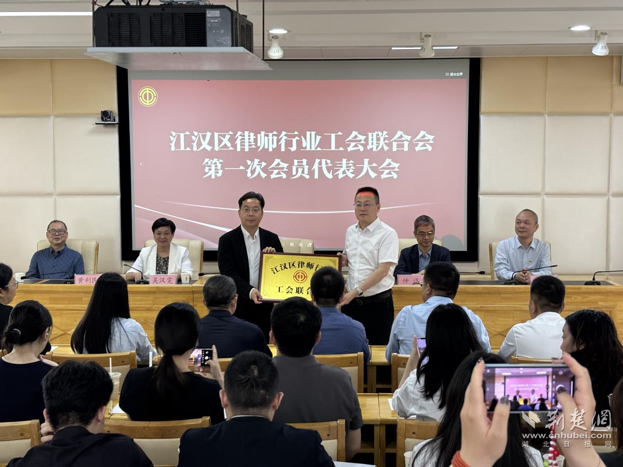 隨后,會議現(xiàn)場為江漢區(qū)律師行業(yè)工會聯(lián)合會進行授牌,宣布江漢區(qū)律師行業(yè)工會聯(lián)合會正式成立。