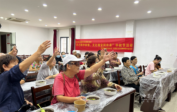 “解碼月餅文化”環(huán)節(jié)則從舌尖上展現(xiàn)中秋韻味?,F(xiàn)場展示了廣式蓮蓉、蘇式鮮肉、京式自來紅等各地特色月餅,講解其象征意義——圓形寓意“闔家團(tuán)圓”,五仁寄托“五谷豐登”的美好愿景,并分享了月餅從唐代“胡餅”到現(xiàn)代多元口味的演變歷程。此外,活動還介紹了傳統(tǒng)祭月儀式中的供品擺放、宮燈點(diǎn)燃、祭文誦讀等禮儀細(xì)節(jié),以及浙江錢塘觀潮、安徽徽州舞草龍、廣東潮汕燒塔等地域民俗,讓居民領(lǐng)略到中秋文化在不同水土中綻放的獨(dú)特魅力。