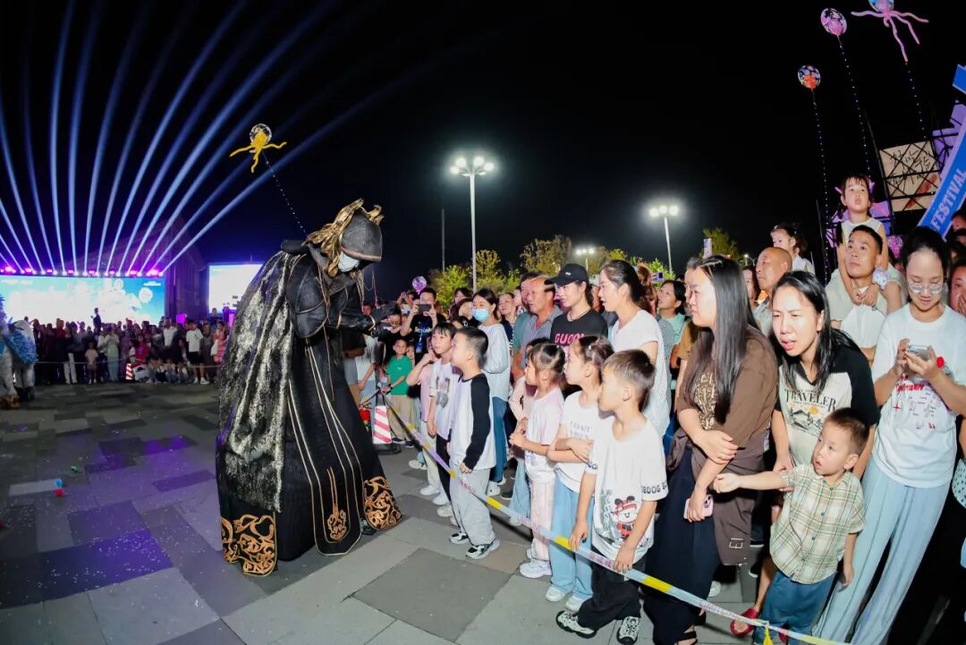 伴隨著開場音樂,高2.4米的白袍巫師哈瑞、黑袍巫師、精靈法師瑞秋等角色踩著高蹺驚艷登場,只見黑袍巫師從袖中掏出匕首,轉瞬間匕首燃起火焰,魔法師們與觀眾互動握手,把彩帶撒向人群,將現(xiàn)場氣氛推向高潮。10月1日,黃陂區(qū)甘露山文創(chuàng)城國際街頭藝術節(jié)正式開幕,吸引近5萬名游客前來打卡。