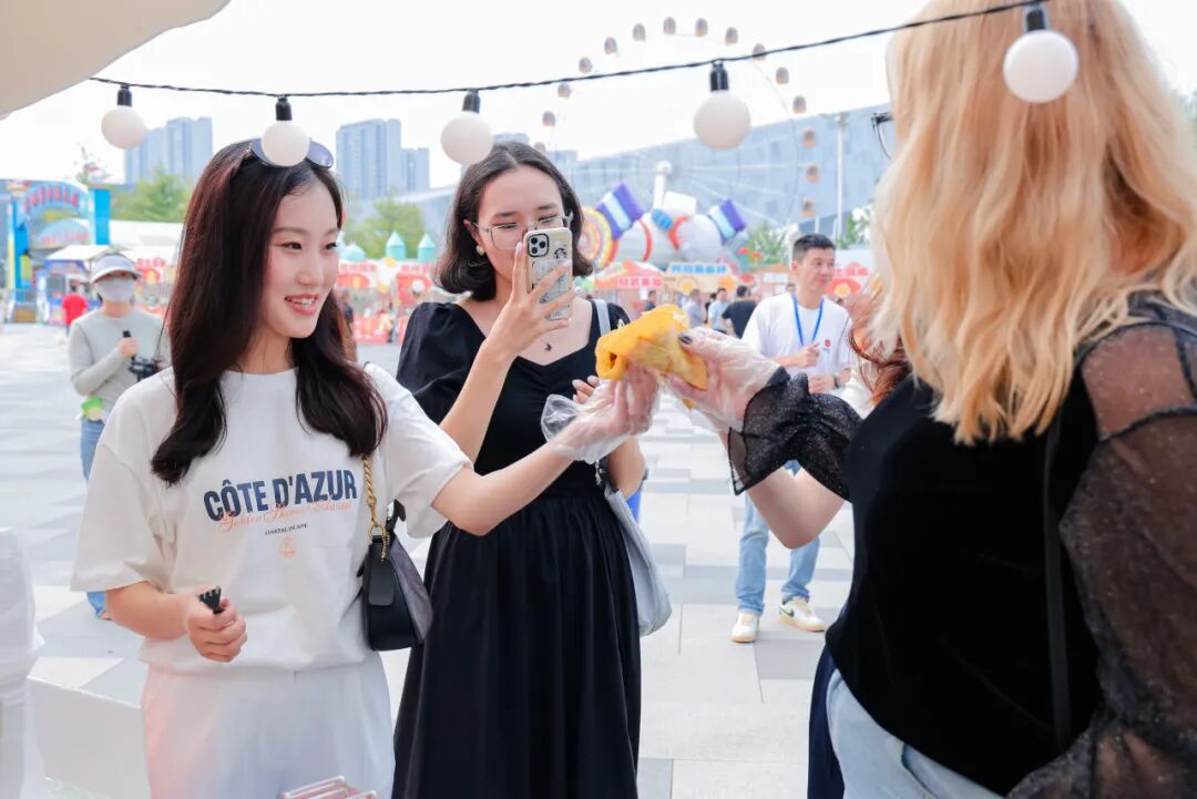 在廣場四周,美食市集也拉開帷幕,40余家全國人氣品牌及黃陂本土特色攤位紛紛亮出他們的“拿手菜”。黎黃陂路傳奇牛排店帶來厚切肉眼牛排;武漢本土精釀品牌“水豚釀造”攜手“糖豆咖啡”,提供手工精釀與現(xiàn)磨意式咖啡。泰式奶茶、手打檸檬茶、爆蛋吐司、辣炒年糕等亞洲街頭小吃,讓游客大飽口福。值得一提的是,來自杭州的原創(chuàng)毛絨品牌“雨過山”首次登陸武漢,以其治愈系設計成為打卡熱點。