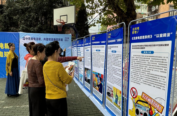 在社區(qū)幸福廣場,一排排科普展板前圍滿居民。展板從無線電基本原理講起,通過“以案釋法”的形式揭露“黑廣播”“偽基站”的詐騙手法,詳細(xì)說明危害與識(shí)別技巧,引導(dǎo)居民合法使用頻譜資源。