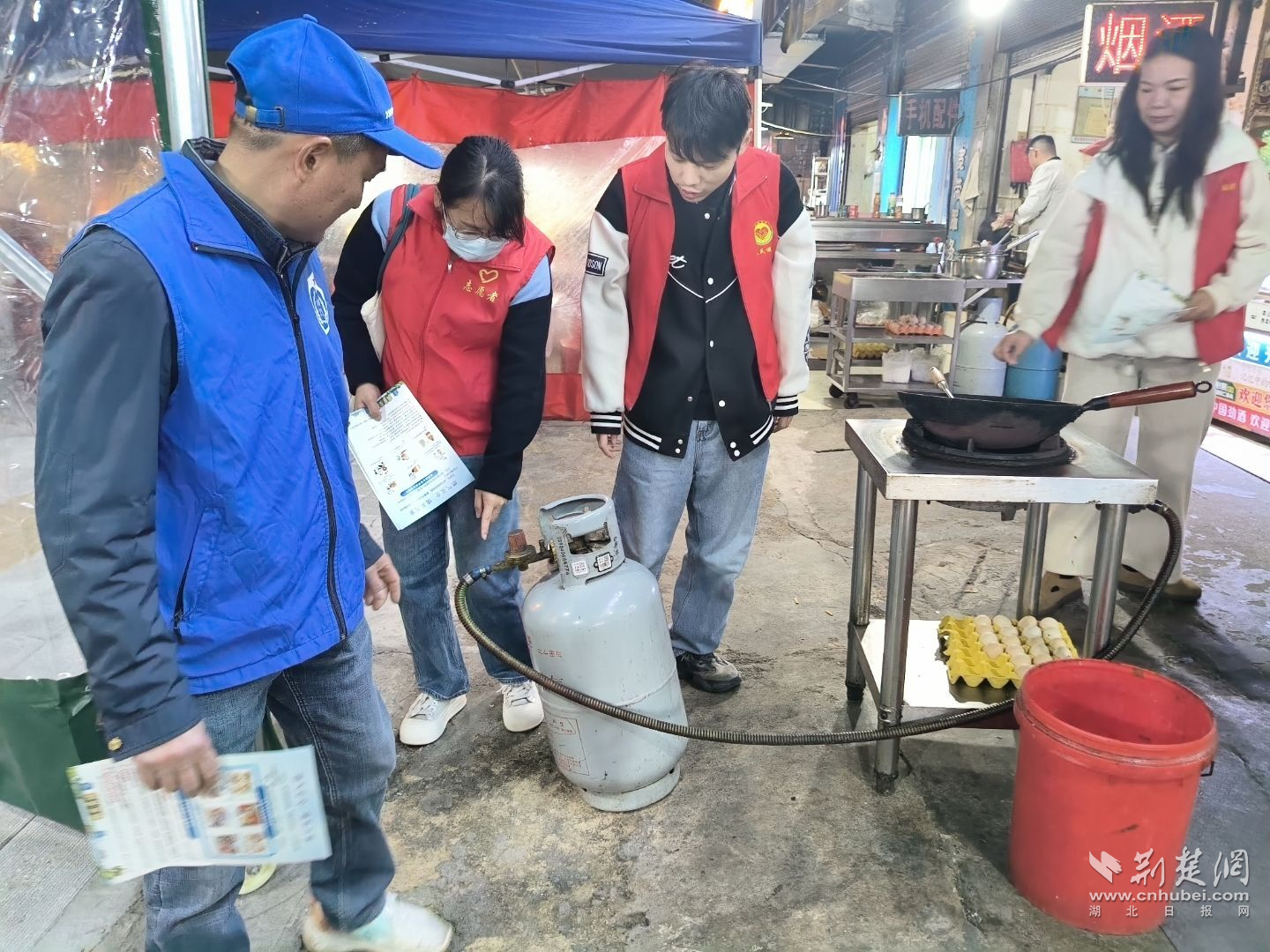 聯(lián)合排查小組深入轄區(qū)商戶指出燃?xì)庀来嬖趩栴}。通訊員供圖