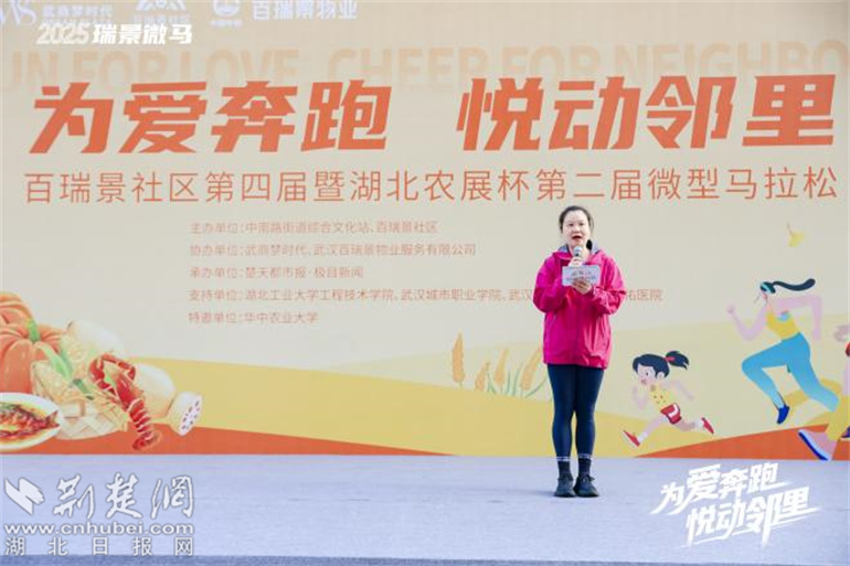 荊楚網(wǎng)(湖北日?qǐng)?bào)網(wǎng))訊(通訊員 王琪琳)金秋送爽,活力涌動(dòng)。11月16日上午,武商夢(mèng)時(shí)代的賽道上,一面印著“鄰里百瑞景,萬戶一家親”的橙色旗幟格外醒目——這是武漢市武昌區(qū)中南路街道百瑞景社區(qū)第四屆暨湖北農(nóng)展杯第二屆微型馬拉松的現(xiàn)場。500名身著統(tǒng)一參賽服的跑者中,有攜手沖線的親子家庭,有白發(fā)蒼蒼卻精神矍鑠的老街坊,也有首次參賽的大學(xué)生志愿者。