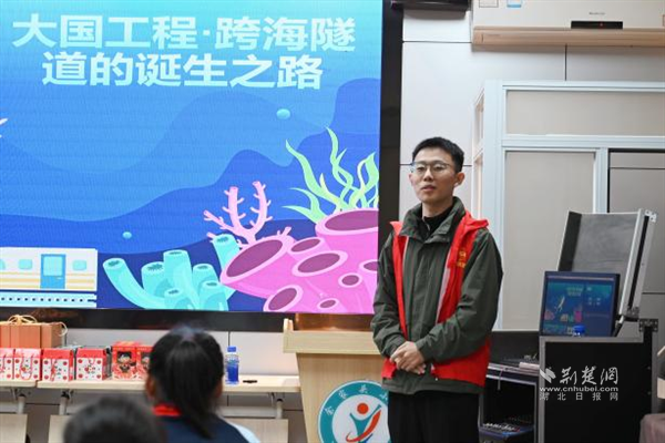 隧道院志愿者程春帥則帶領(lǐng)孩子們“潛入深?!保剿魉淼览锏摹颁撹F巨龍”。結(jié)合科普視頻,志愿者講解了海底隧道的修建方式、防水抗震等難題。當(dāng)講到修建隧道的“秘密武器”——盾構(gòu)機(jī)時(shí),志愿者將其比作巨大的鋼鐵巨龍,巨龍一路開(kāi)路,隧道便穩(wěn)穩(wěn)建成。孩子們聽(tīng)得入神,眼中閃爍著好奇的光芒。