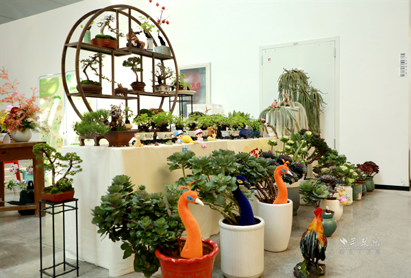 辛高爐帶來(lái)《誰(shuí)不說(shuō)咱家鄉(xiāng)好》等插花作品,以菊為語(yǔ),以景傳情,展現(xiàn)樸素的鄉(xiāng)土情懷。他表示:“每一件插花作品都是一個(gè)微縮的園藝課堂,它們不僅是技藝的展示,更是故事的載體,詮釋著人與自然和諧共生的主題?!?/p>